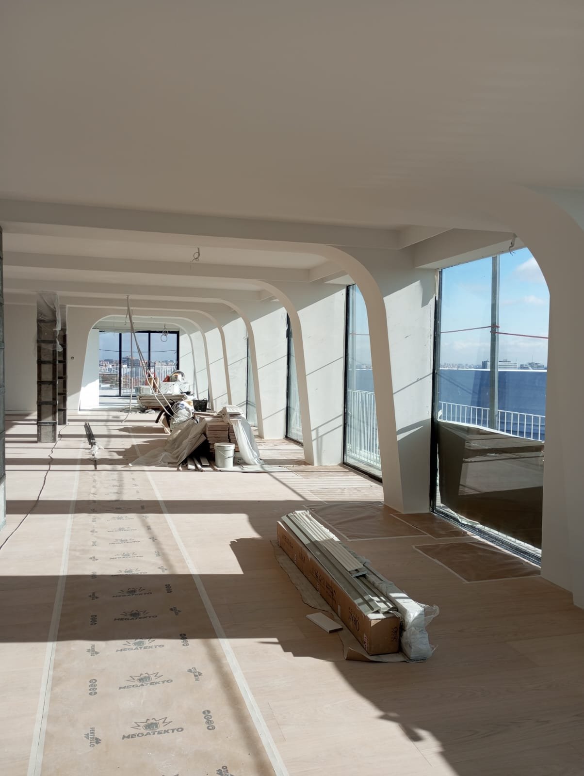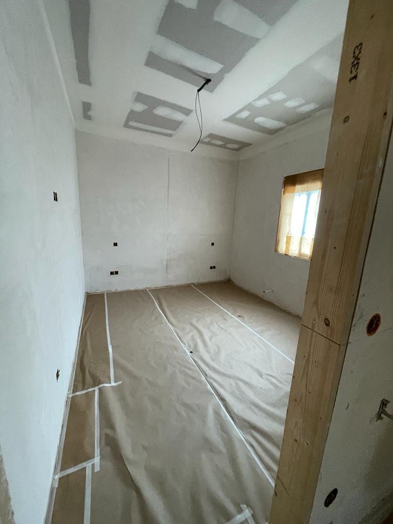 - Aplicación de velo de fibra de vidrio sobre paredes y techo.